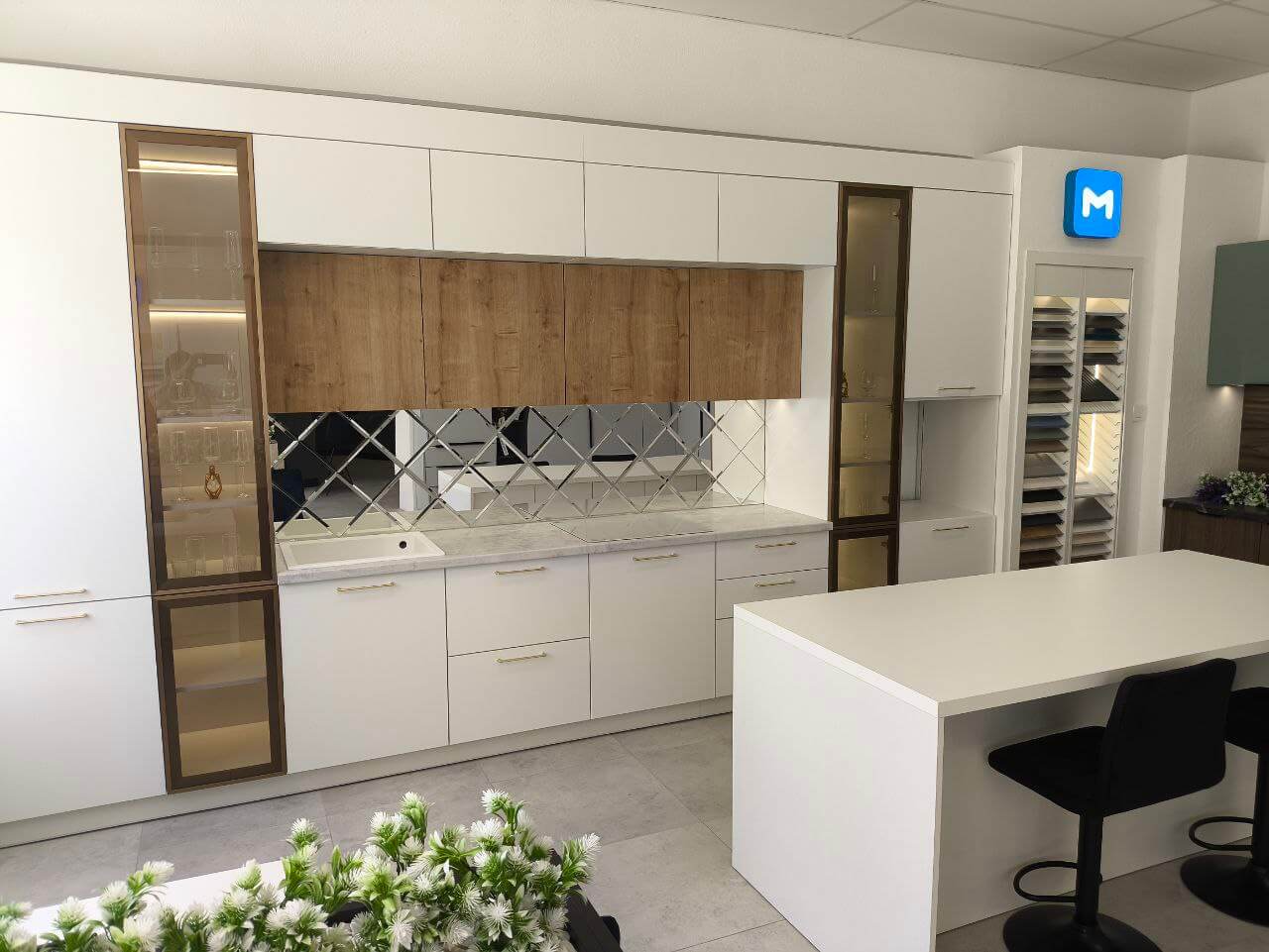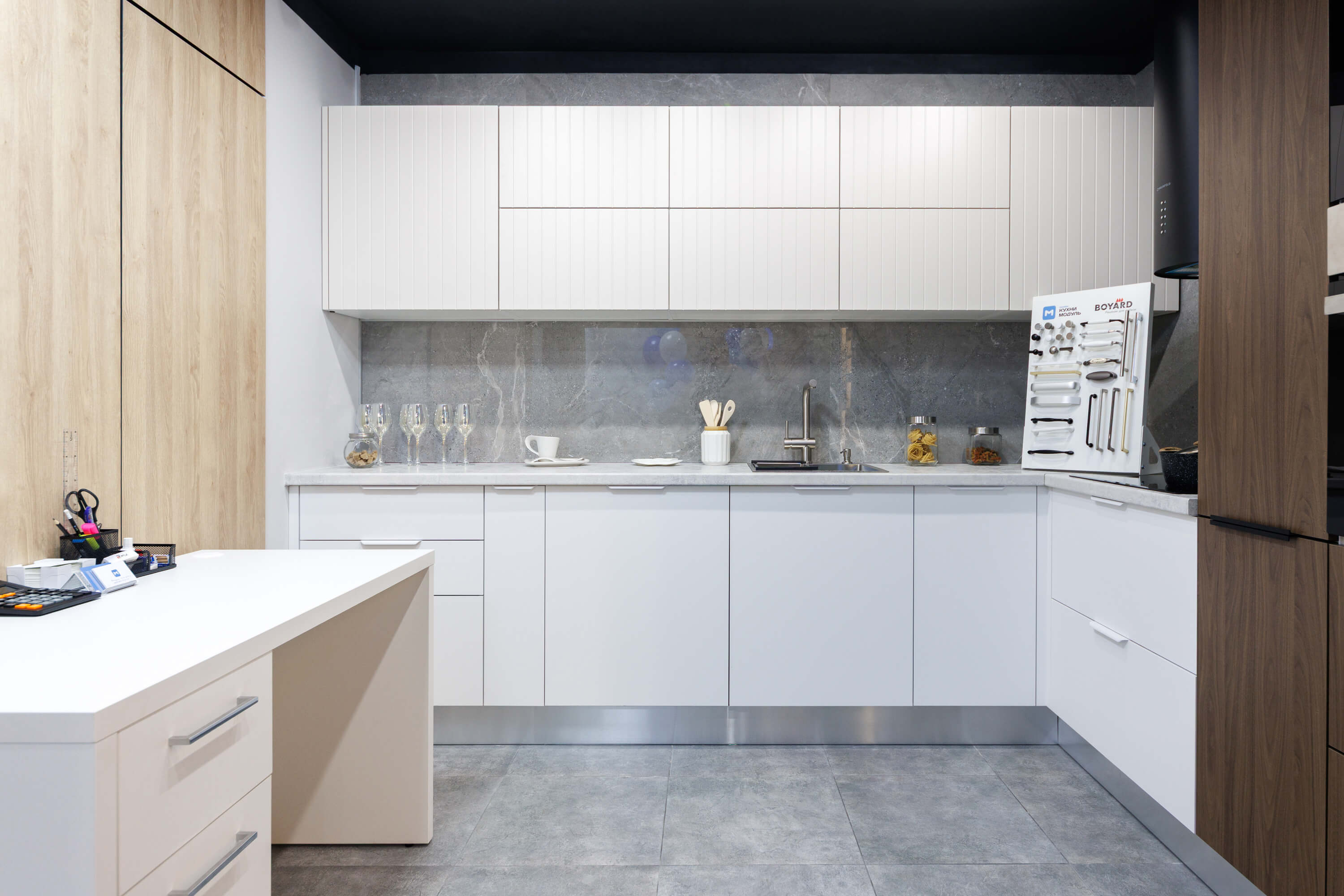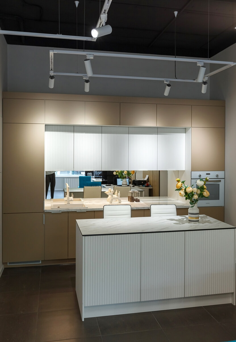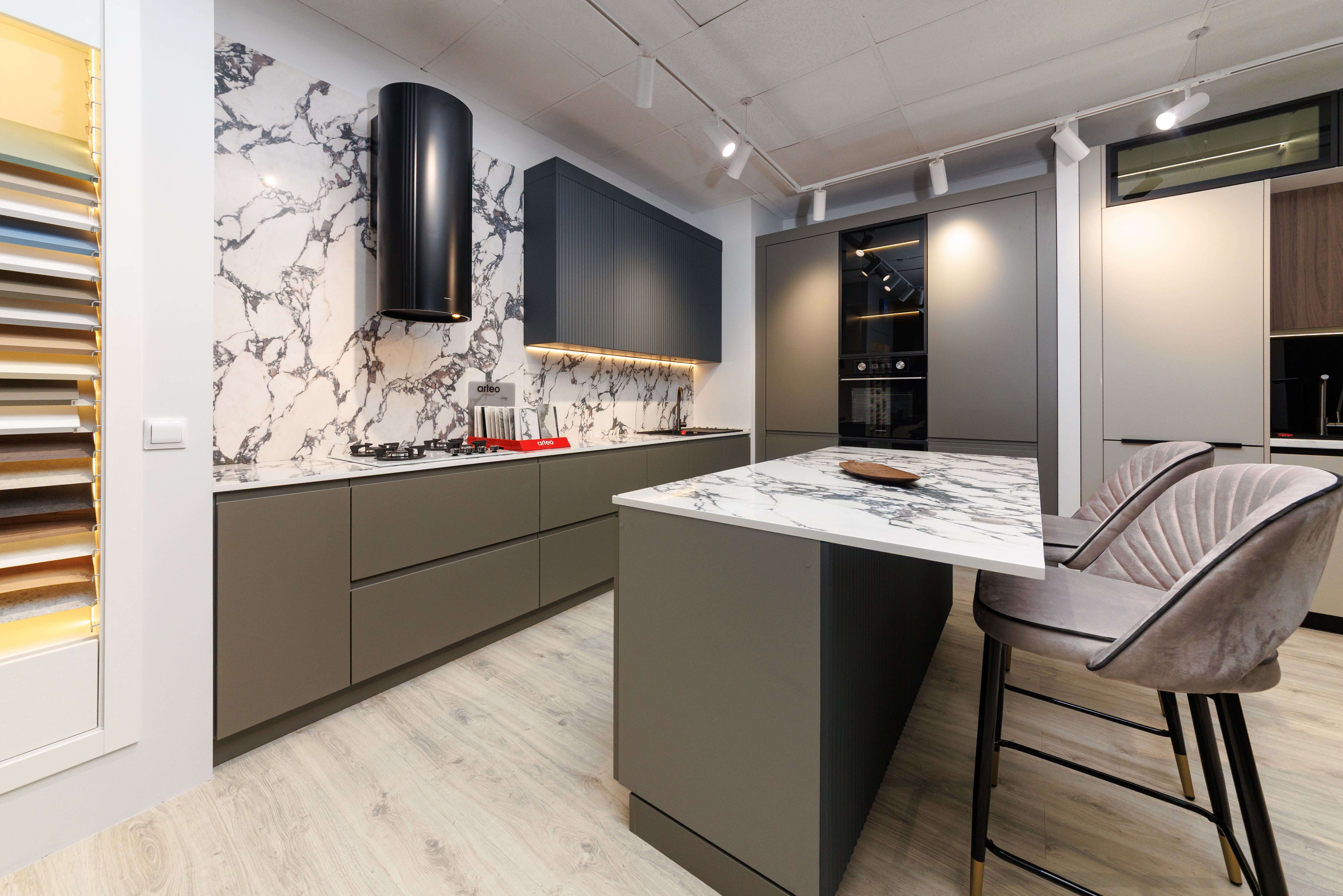 Приходите в наши салоны, чтобы посмотреть образцы вживую, разработать дизайн-проект кухни и получить расчет стоимости